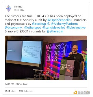 在Ethereum Denver Conference(以太坊丹佛大会)期间#Walletcon2023会议上,ERC-4337标准支持的智能账户出人意料地发布了。