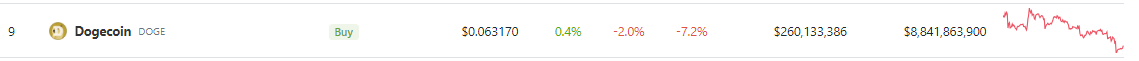 目前,根据CoinGecko 的数据,狗狗币的价值为 0.063 美元。然而,近期市场状况不佳,导致 DOGE 价格暴跌。