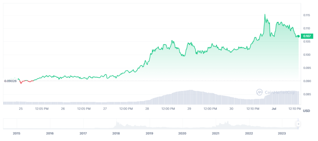 据CoinGecko报道,XLM 最近在 24 小时内大幅上涨 4.6%,将其价格推至 0.109 美元。此外,过去 7 天,XLM 大幅上涨 22.6%。这些积极的价格走势吸引了投资者和交易员的注意,表明市场看涨情绪。